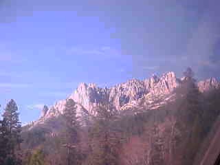The Castle Crags before a well-deserved fresh air break at Dunsmuir.