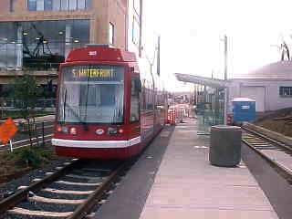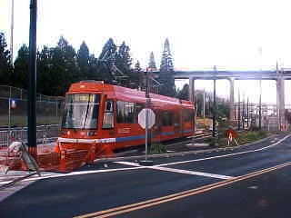 The Portland Streetcar at the SW Moody & Gibbs station.