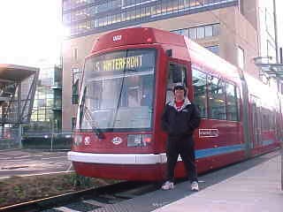 Me and the Portland Streetcar. I returned north through downtown to the northwest end of the line then returned to the stop by the hotel.