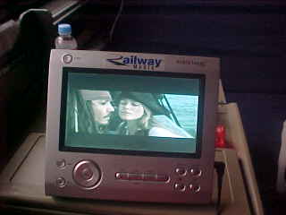 I started watching "Pirates of the Caribbean Dead Man's Chest" and we departed Portland seven minutes late because of the late boarding of passengers. We had a red signal at Labish, waiting for the Sakim switcher to clear. I made a 6:00 PM dinner reservation so I could enjoy the fresh air later at Eugene. At Hallawell, we met the northbound Coast Starlight running three hours late. After we reversed out of the siding, we passed Union Pacific 5287 West which was in the siding ahead of us then continued on to Eugene for the fresh air stop.