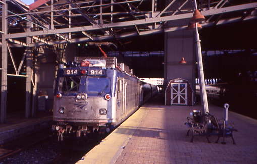 I was at the Harrisburg Transportation Centre and at 7:52 AM, the door opened and I went downstairs to board Keystone Train 642 since it had limited stops and only takes an hour and thirty-five minutes to reach Philadelphia. The train's consist was AEM-7 electric engine 914, Amfleet coaches 44234, 82614, 82534 and 82557 with cab car 9641. We departed on time and started what I hoped would be a fast trip with plenty of 110 mph running.