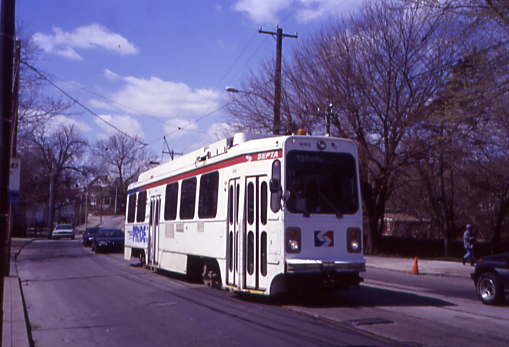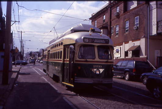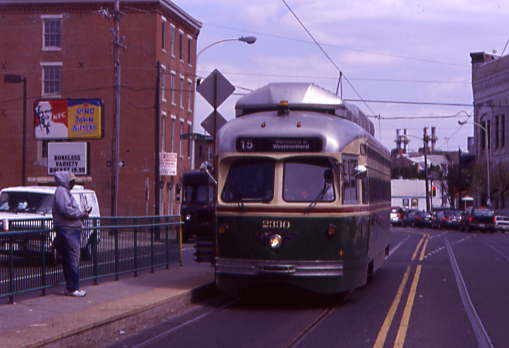 I wondered where the SEPTA PCC's ran and asked the operator, who told me how to get to PCC Line 15. I stayed aboard to 65th Street where I detrained and a minute later, a 36 Line streetcar took me back to 30th Street station and I walked across the street into the Amtrak station for a KFC lunch. I visited Club Acela, checked my e-mail and made a few phone calls then returned to SEPTA's 30th Street station and boarded a Market-Frankford Line train, taking it east to Girard. I exited, went down the stairs and found streetcar tracks in Girard Street. My plan was to take the first PCC that came along.