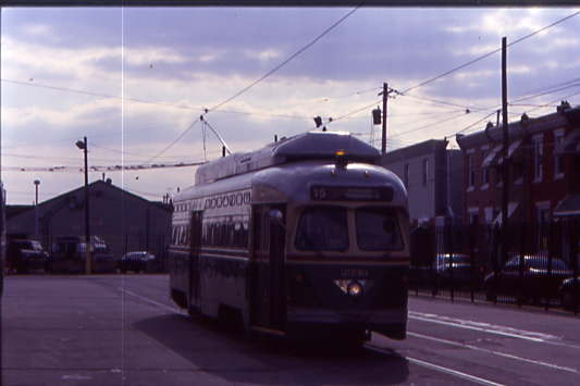 A westbound PCC near the Zoo stop. I returned eastbound to Front Street where I started my last piece of new SEPTA rail mileage. Again, we stopped every two blocks, passed under Interstate 95 and turned left onto Richmond Street then went under the CSX freight line and Interstate 95 again, stopping every two blocks to the Westmoreland Street loop. The PCC I was riding on had flat wheels, so I switched to the car ahead for the trip back.