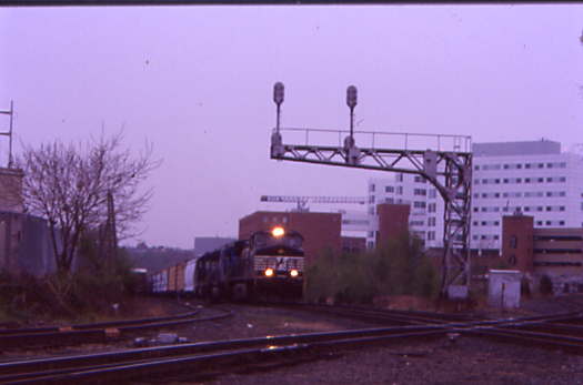 While in the station, we had to wait for a red signal to allow the same Norfolk Southern local to proceed across the crossing and continue east.
