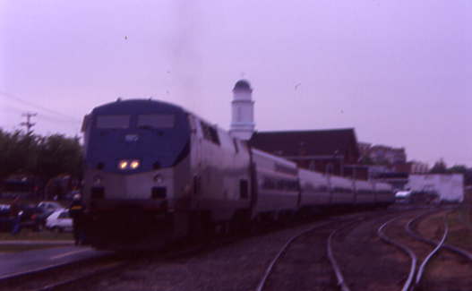 Cardinal 51 4/11/2007The train arrived as soon as I stepped off the elevator and walked down the platform to Room 3 of the sleeper "Skyline View" and met my sleeping car attendant, Thomas Finnegan. We departed on time with AEM-7 electric engine 916, Viewliner sleeper 62036, lounge/diner 28013 and coaches 25073, 25123 and 25113. I walked through the train and met the rest of the crew and noted that it now had a Diner-Lite on board both sets of equipment, so would try it.