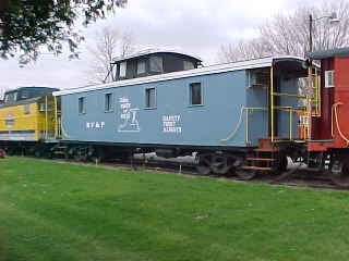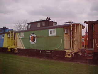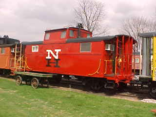 Caboose 40 painted as Nickel Plate Road, is ex. Conrail 21144, exx. Erie-Lackawanna C308, nee Erie C308 built by International Car Company in 1953.