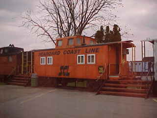 Caboose 28 painted as Seaboard Coast Line, is Reading 92xxx, builder and year unknown.