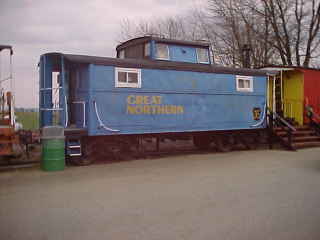 Caboose 35 painted as Great Northern Railroad, is Pennsylvania Railroad N5B number unknown built by the railroad, year unknown.