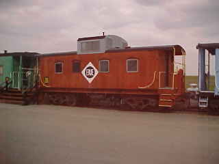 Caboose 34 painted Florida East Coast Railroad, is ex. SOO 99000, nee Wisconsin Central 2 built by the railroad in 1891.