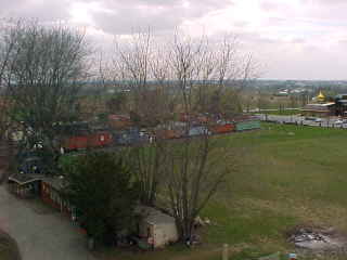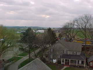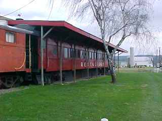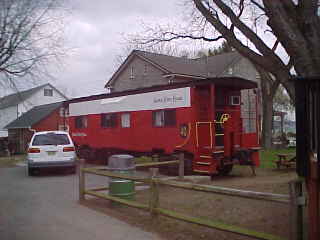The view looking towards the Strasburg Rail Road from the Red Caboose Motel. I returned to my caboose, watched television and worked on today's stories before driving into Strasburg where I found a public phone to call home then returned to the motel for the night.