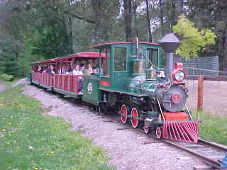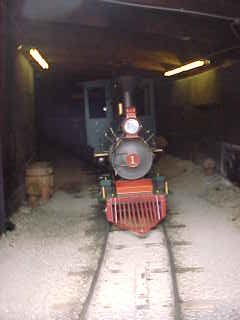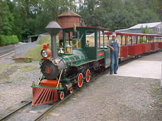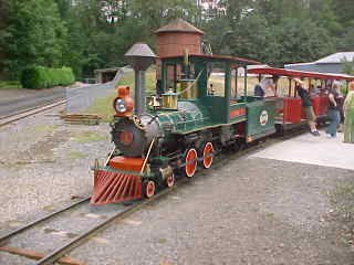 24" gauge 4-4-0 1 "Hank" built by Crown Metal Works in 1964 and originally operated at Idle Wild Park in Maryland. The tunnel is also the storage shed for the train.