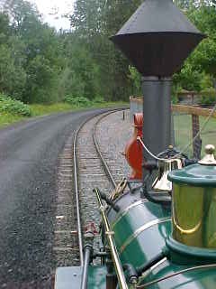 Hank's cab. Bob spent some time polishing up his pride and joy then invited me for a cab ride and had me operate the bell. We came out of the tunnel to the Tolt River Depot.