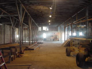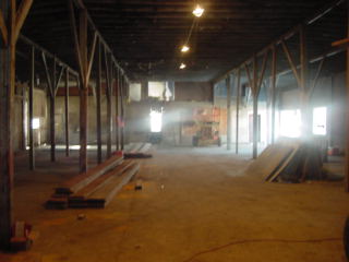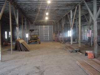 The interior is extremely spacious. A new concrete floor will be installed, as well as a stage, a new lobby will be created with a clock room and new bathrooms. In addition, a kitchen and bar will fill out this new Event Center.