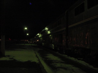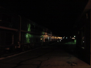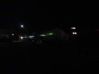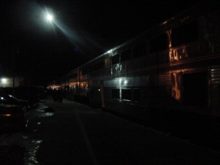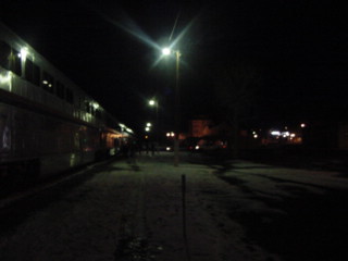 It was a cold evening in Raton. Back aboard the train, I watched more of the Million Mile Trip DVD until about 6:15 PM, when I had a repeat of last night's dinner, which took me past Trinidad. I finished "Kissology" just before La Junta, where I stepped off into the very cold breezy night air.