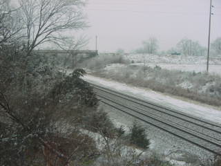 The view from inside. The Trainweb and TrainParty.com building is across the tracks to the left.