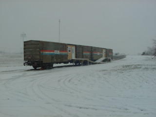 The Southwest Chief just before a quick snow shower forced us all back on the train.