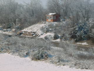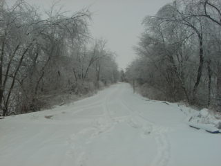 All the tree branches were covered with ice and made interesting sounds as I walked down the snowy path.