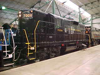 Pennsylvania Railroad GP9 7006 built by Electro-Motive Division in 1955. It was gifted to the museum in 1985 and was repainted in its original PRR livery at Altoona in 2002.