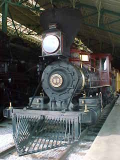 Virginia and Truckee 2-6-0 20 "Tahoe" built by Baldwin in 1875. The ornately decorated locomotive once featured brass trim, finished woodwork, gold leaf and a bonnet style smokestack (an original feature that was restored) as part of the original Baldwin paint scheme, typical of the 2-6-0 locomotives of the 1870's. During its lifetime, the fuel supply changed from wood (1875) to coal (1907) to oil (1911).