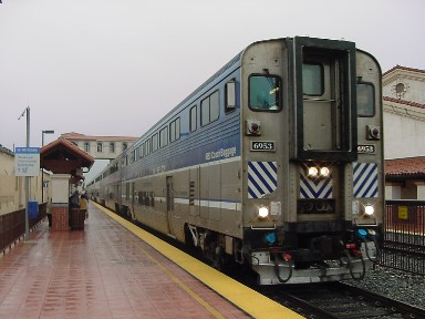 I was awoken by rain at 2:30 AM on this Saturday morning of our Train Travel Meetup Group trip to Santa Barbara. Knowing that this storm should be past my house by morning, I went back to sleep then I arose at 6:15 AM to find it still raining so I turned on the Weather Channel and looked at the local Doppler Radar which showed most of the rain would be gone by the time I needed to be at the station. I did some chores around the house before driving to the Santa Ana Station to wait for Pacific Surfliner 763. I parked in the north lot and walked over to the east platform via the grade crossing at Santa Ana Boulevard and a few minutes later, was joined by Mr. and Mrs. Winston Walker and then Robin Bowers found us as he was joining us.