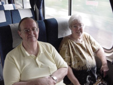 Pacific Surfliner 763 10/13/2007This train arrived on time and we boarded a Surfliner coach. I went back downstairs to check on the Walkers when I slipped at the bottom of the stairs as they were very wet. Lucky I landed on my rear end so was all right. As the crew was expecting two large groups, the first two cars of the train were closed off. When I explained to Conductor Margaret that we would be a small group, she let us into the Superliner coach behind the cab car and we all chose seats. As she took my ticket, she asked if I was all right and I replied "Yes!" We made our way to Anaheim then Fullerton, where a large group of Boy Scouts boarded who were going to Carpinteria State Beach for a weekend campout.