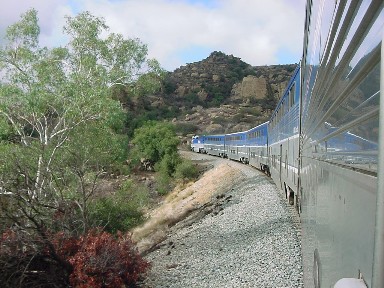 Pacific Surfliner 784 10/13/2007We all chose seats in the Superliner coach and departed on time, making our way back down the coast to Seacliff siding, where we went into the siding for Pacific Surfliner 769. We relaxed as we travelled inland to the Simi Valley. Chris Parker had some of his videos that he had shot over the last few years and we watched the Beech Grove Shop tour and part of the French Lick, West Baden and Southern excursion. We pulled into the siding at Stratheren to get around Union Pacific 8501 West, and at Hassen, met Pacific Surfliner 775.