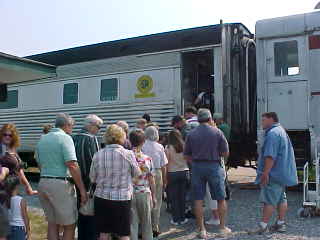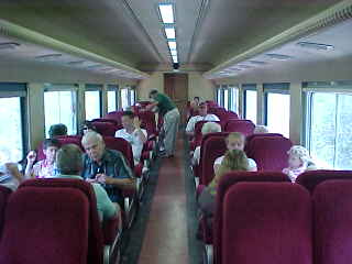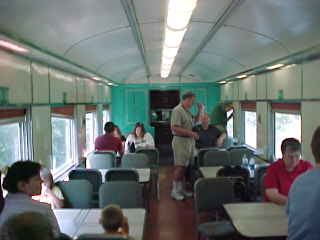 As passengers boarded, they were searched by base security for our trip through the "Secret City Complex". When I say "searched", I mean far better than any airport I have been through, as they went through every pocket in my backpack. Once cleared, we could board the train and Chris and I found our assigned seats in the Algoma Central coach.
