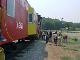 Chris Parker and I came down the highway knowing that the Heritage Center was on the left and saw a sign saying "Train Rides Today". We turned off the highway and found more signs that directed us to the parking lot and Wheat station. I picked up the tickets for our train ride then met John Humphrey, one of the founding members of the Southern Appalachia Railway Museum. I had learned about this train ride from Bart and Sarah Jennings on my first rare mileage trip with them on the Idaho Northern Railroad. John, Chris and I talked while we waited for the train to arrive. There were air conditioning problems with one of the coaches so they were a little late.