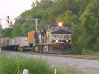 The northbound freight went by us first.