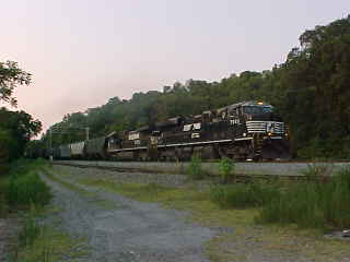 A southbound Norfolk Southern freight waiting at Glen Mary. Next a northbound freight came but also stopped.