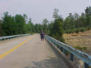 Chris on that bridge. In an attempt to find a train, we decided to stop at the Cave Springs Road bridge.