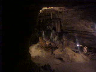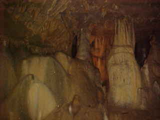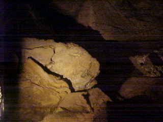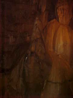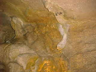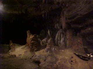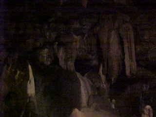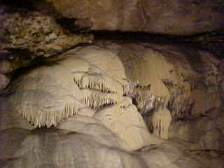 More flow stone in the Grand Ballroom and in the right hand corner is Jaws from the film "Jaws".