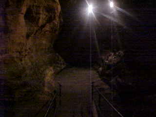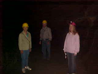I walked into the office and bought a ticket along with another couple. Since a large school group had just arrived in two school buses, it was decided to take the three of us on a tour before the others arrived. We put on our miner's helmets and walked out of the back door of the office. Our guide would lead us through Seneca Caverns.