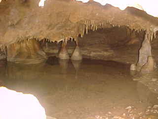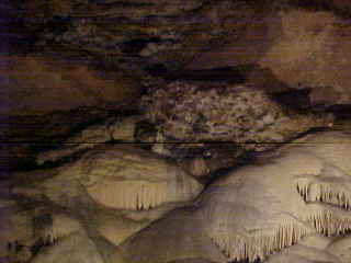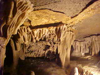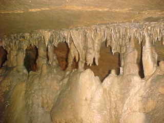 Seneca Caverns 5/17/2007It started over 460 million years ago. That is when the limestone bed where the Caverns formed was laid under an inland sea. Limestone is formed from the remains of shells from clams, coral and other shellfish, which settle on the bottom of the sea over time.
