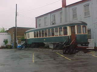 Hagerstown and Frederick Transit interurban 168, built by J.G. Brill in 1914. It operated until 1947 and was the last trolley to run in Washington County. It was moved to Dam 5 for use as a cabin then donated to Hagerstown Model Club and moved to a fairground until being donated to the Hagerstown Roundhouse Museum in the 1980's.