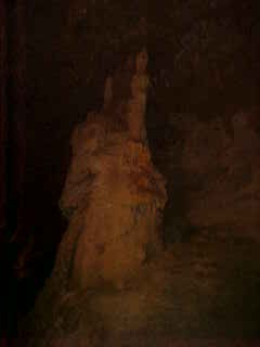 The Bridal Chamber and you could see Princess Snowbird in her wedding dress and her black horse behind it. Behind her is her husband, Rockoak, with his white horse. Below him is the cave's natural totem pole turned upside down.