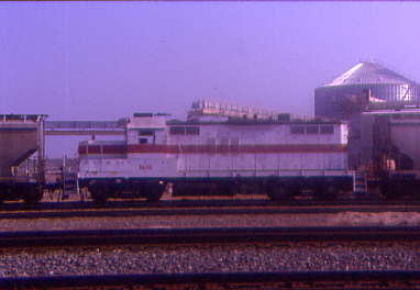 Foster Farms GP9u 1636, ex. VFPX 1636, exx. Santa Fe 2245, nee Santa Fe GP9 704 built by Electro-Motive Division in 1956 at Zacky Farms at Traver. We pulled off at Kingsburg to see the former Southern Pacific station under restoration there before going to Carls Jr. for lunch. Back on the highway, we came upon "99 Closed Ahead Exit" and should have exited the freeway at that point, but did not. All traffic came to a stop and it took forty-five minutes of patience to move one mile to exit the freeway. What had happened was a 100 car pileup in the Tule Fog that killed two people in two different vehicles, which occurred seven hours before, but the California Highway Patrol was undertaking a major investigation at the accident site.