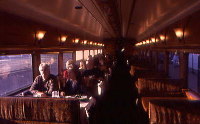 The Sierra Railroad Golden Sunset Dinner Train 11/03/2007The Sierra Railroad Dinner Train is regarded as one of the five best dinner trains in the West. They serve gourmet dinners, lunches and brunches in their beautifully appointed dining cars. Popular trips include Sunset Dinners, Murder Mystery Dinner Theater, Champagne Brunch and Wild West Adventure, plus a number of seasonal trips such as Spring Wildflower Train, Chocolate Festival Trip, Farmers Bounty Trip, Rail and Raft and the annual Christmas Train.