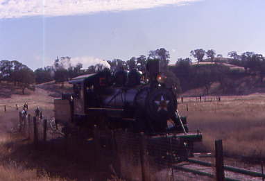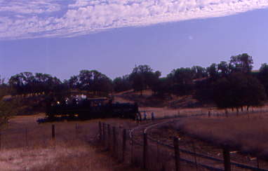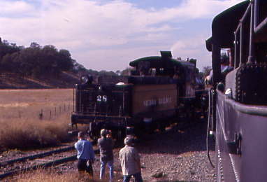 Sierra 28 on its way to the mainline and Warnersville to get watered as McCloud River 18 had already been watered there on the eastbound trip. Once the switch was thrown again and all passengers were aboard, McCloud River 18 took control of our train, leading it westbound towards Oakdale.