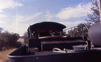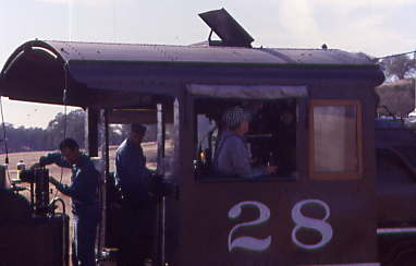 The cab of Sierra 28. The switch was thrown and McCloud River 18 pulled forward to clear it.