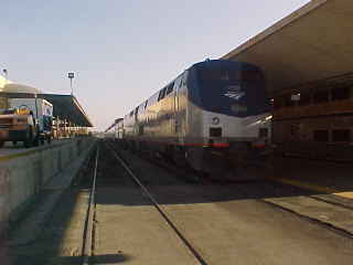 The train crossed the Rio Grande River just after the DVD finished. We arrived in Albuquerque very early at 11:30 AM and I called Let's Talk Trains, the Internet Radio Show then it was off to Coldstone Creamery for some ice cream on this 94 degree afternoon before returning to my nice cool room on the train. I watched the Milwaukee Road Scrapbook DVD before our on-time departure and enjoyed it all the way through Apache Canyon. At Lamy, I had a nice surprise!