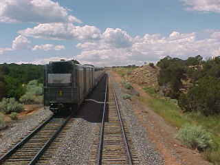 We met the westbound Southwest Chief at Sands siding. After that we crossed the Pecos River heading towards Las Vegas, New Mexico.