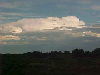 Great-looking thunderheads as we made our way to La Junta. The four of us had dinner together for the second evening, with me having the pork chop and chocolate cake, which were excellent. We arrived at La Junta over an hour early and detrained into the warm evening air then once back in my nice cool room, I worked on the story before watching more of the Led Zeppelin DVD. We departed La Junta on time and I called it a night after Lamar.