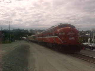 Washington Central F7A 82, ex. Maryland Area Regional Commuter 82, exx. Maryland Area Regional Commuter 7182, exxx. Morrison-Knuden 5, exxxx. Baltimore and Ohio 4582, nee Baltimore and Ohio 939 built by Electro-Motive Divisoin in 1952, under the street bridge.