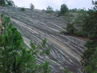 Passing through the forest and along the granite slopes of Stone Mountain.