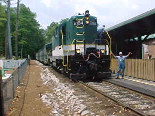 Stone Mountain Railroad GP9 2184 waiting for us to pass by.