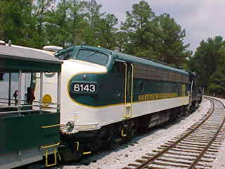Stone Mountain Railroad FP7A 6143, ex. Atlanta, Stone Mountain and Lithonia Railroad 6143, exx. New Georgia Railroad 3498, exxx. Southern 3498, nee Cincinnati, New Orleans and Texas Pacific 6143 built by Electro-Motive Division in 1950.
