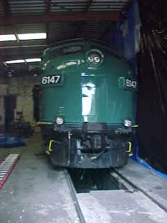 Inside the shop was Stone Mountain Railroad FP7A 6147, ex. Stone Mountain 3499, exx. Southern 3499, nee Cincinnati, New Orleans and Texas Pacific 6147 built by Electro-Motive Division in 1950.