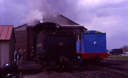 Strasburg Rail Road 0-6-0 31 meeting Thomas the Tank Engine.