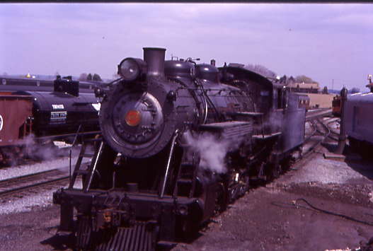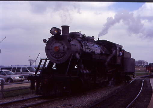 Once outside, we walked by the engines, including Strasburg 2-6-0 89, ex. Canadian National 911, nee Grand Trunk Railway 1009 built by Canadian Locomotive Company in 1910 and acquird in 1972. It was submerged at Wilkes Barre during Hurricane Agnes flood in June of that year and was first run on March 17, 1973.